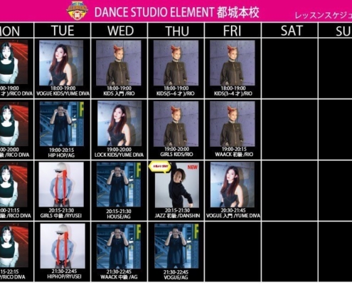 また、幅広いジャンルを学んでいる事を活かし、ELEMENTでは、本校、NORTH校、末吉校にてVOGUE•LOCK•HIPHOP•HOUSEクラスのインストラクターを務める。また、ソロプロデュース、チームプロデュースも活動している。